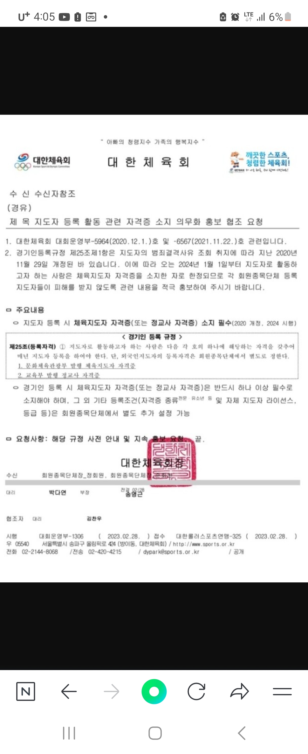 타 스포츠종목에는 이미 체육정교사 자격증으로도
