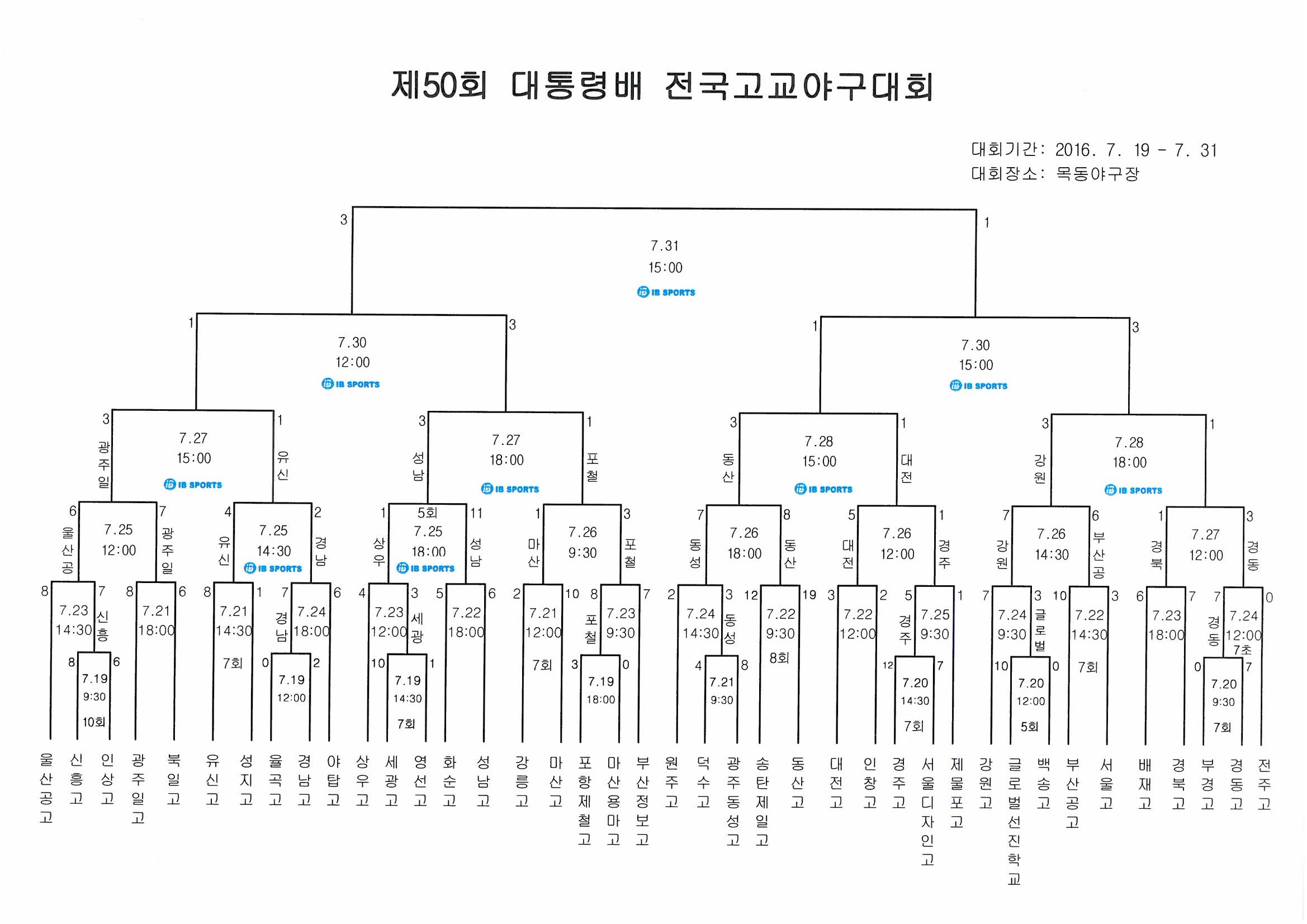 * 대회기간 : 2016년 7월 19일(화) ~ 7월 31일(일)