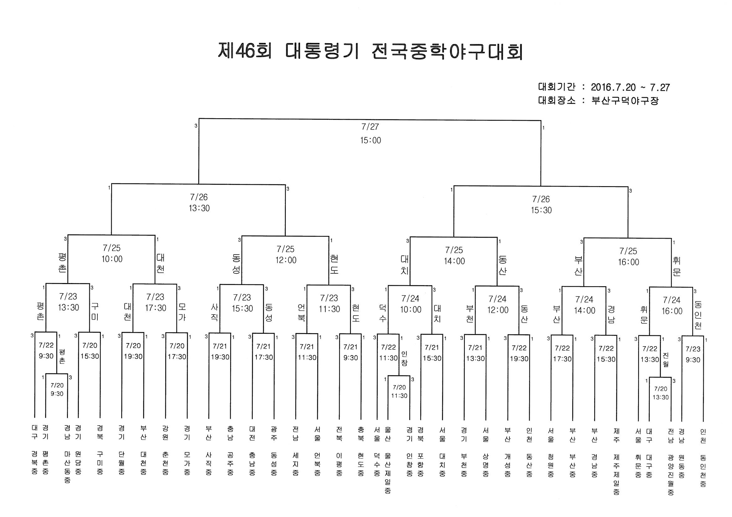 *대회명 : 제46회 대통령기 전국중학야구대회 *기 간 : 2016.7.20~7.27 *장 소 : 부산 구덕야구장