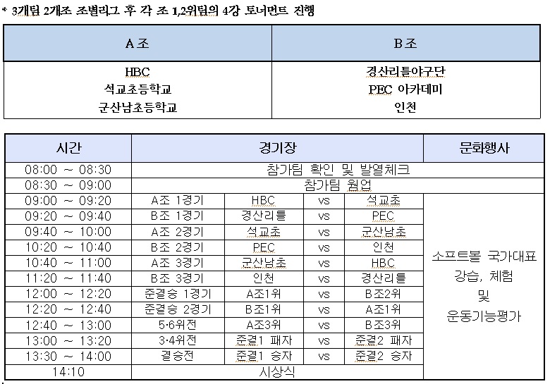 ▣ 참가팀 : 인천 상인천초등학교&간석초등학교, 경기 HBC야구단, 경기 PEC아카데미, 충북 석교초등학교, 전북 군산남초등학교, 경북 경산리틀야구단(6팀)