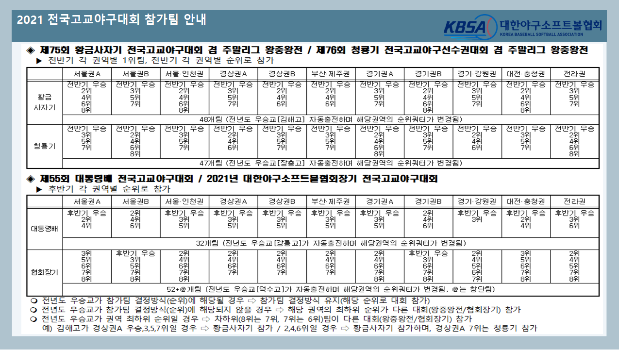 2021 전국고교야구대회 참가팀 안내입니다. 자세한 내용은 해당 이미지를 확인해주시길 바랍니다.
