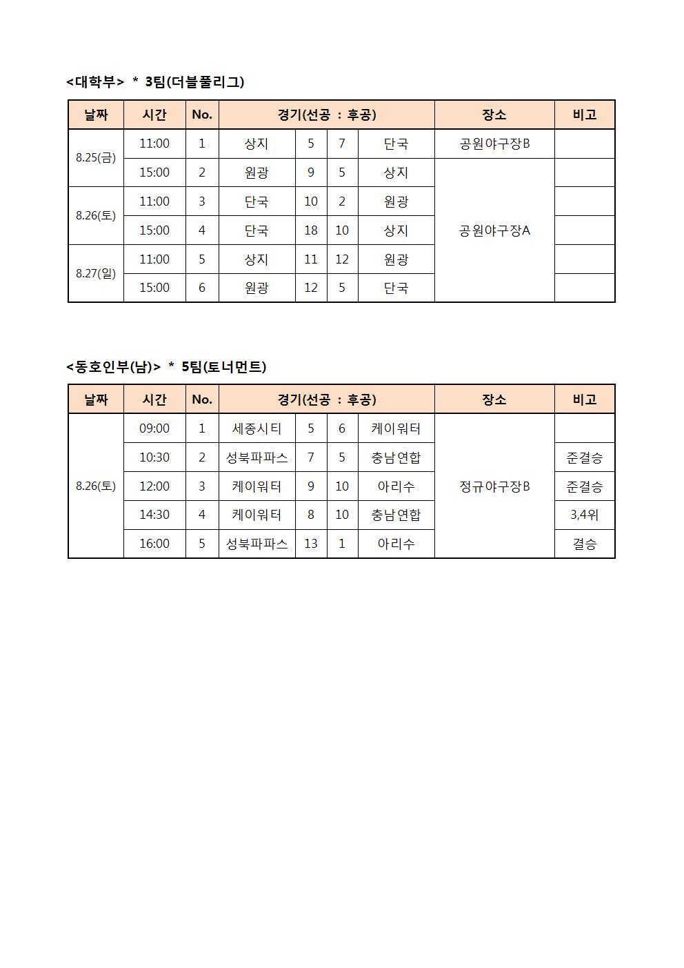 이전 위 화살표 [경기결과 및 시상내역] 제 8회 대한체육회장기 전국생활체육 야구대회