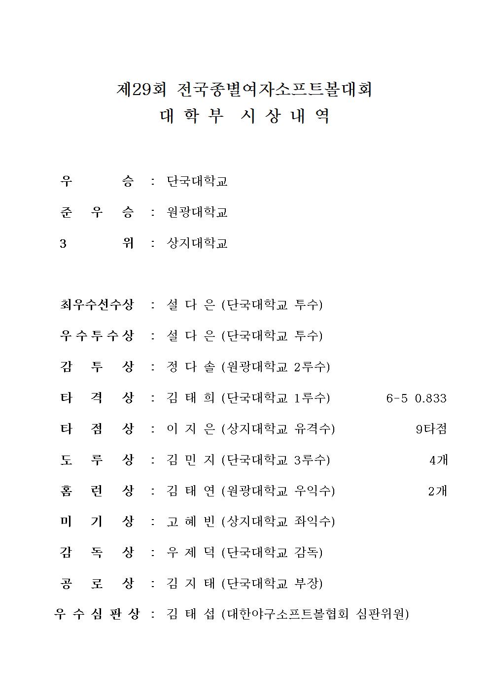 제29회 전국종별여자소프트볼대회 시상내역(대학부).jpg