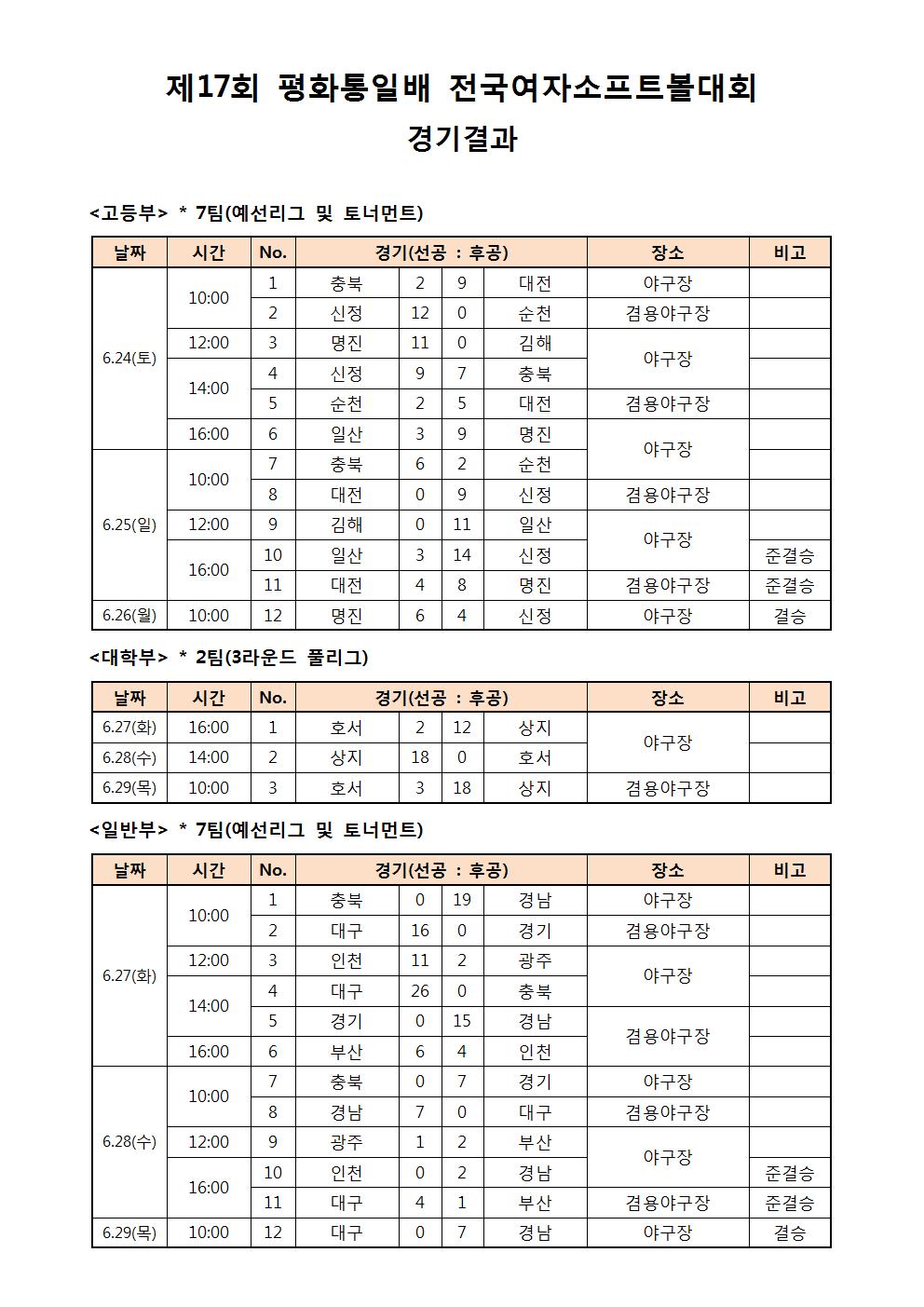 제17회 평화통일배 전국여자소프트볼대회 경기결과.jpg