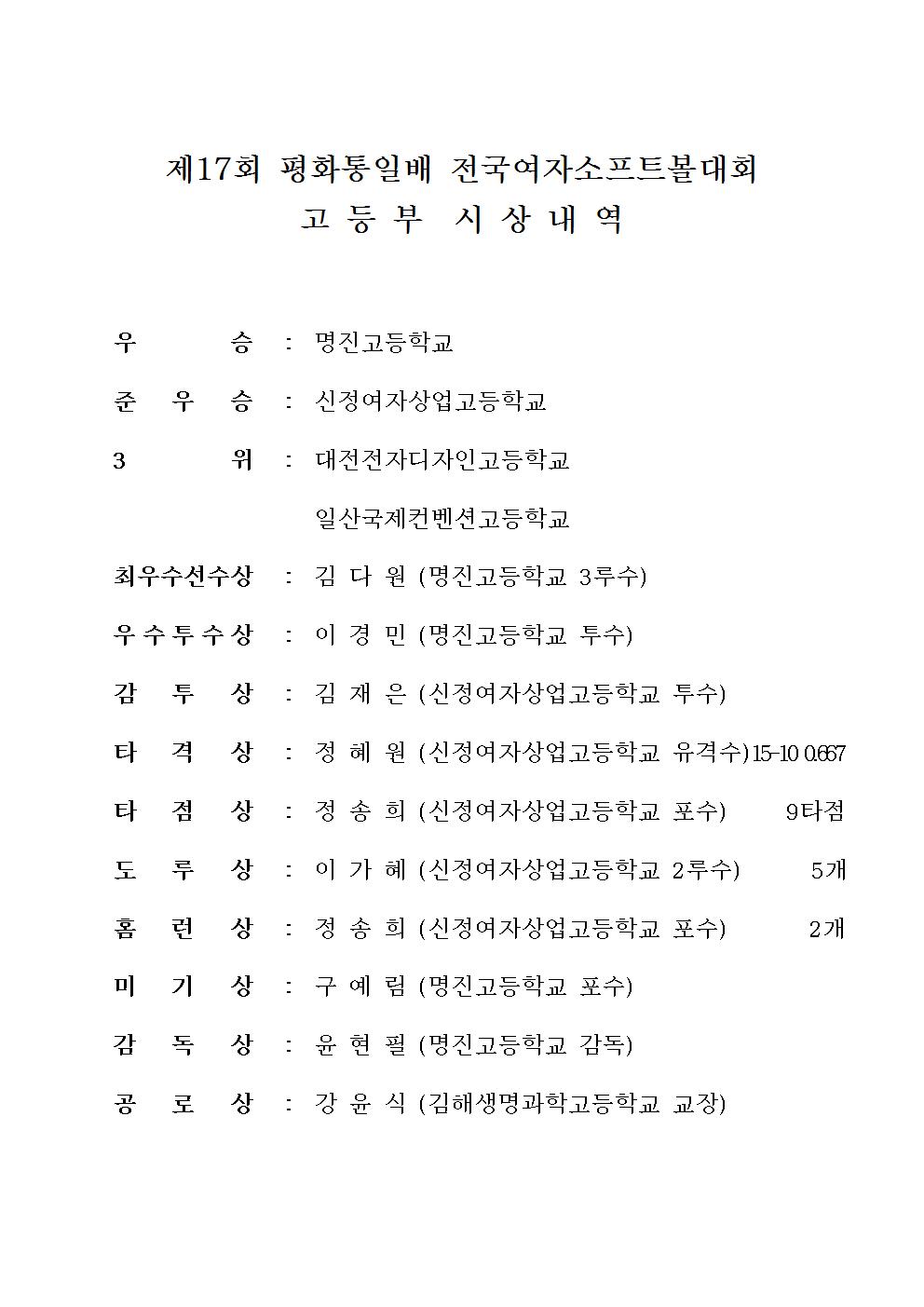 제17회 평화통일배 전국여자소프트볼대회 시상내역(고등부).jpg