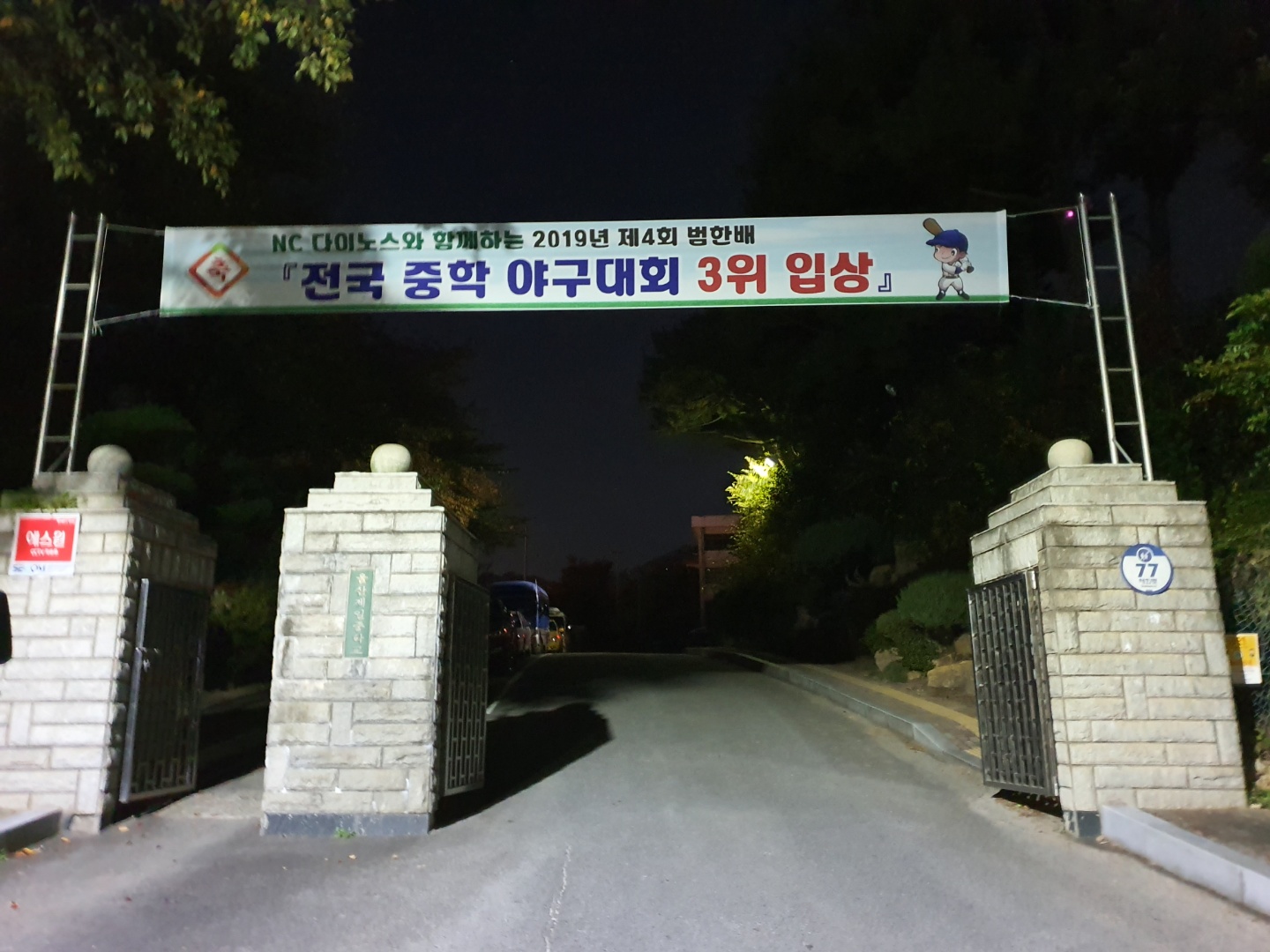울산 제일 중학교 내 넓은 운동장과 안정장비 망, 야간에 야외에서도 훈련 할 수 있는 라이트 구비.