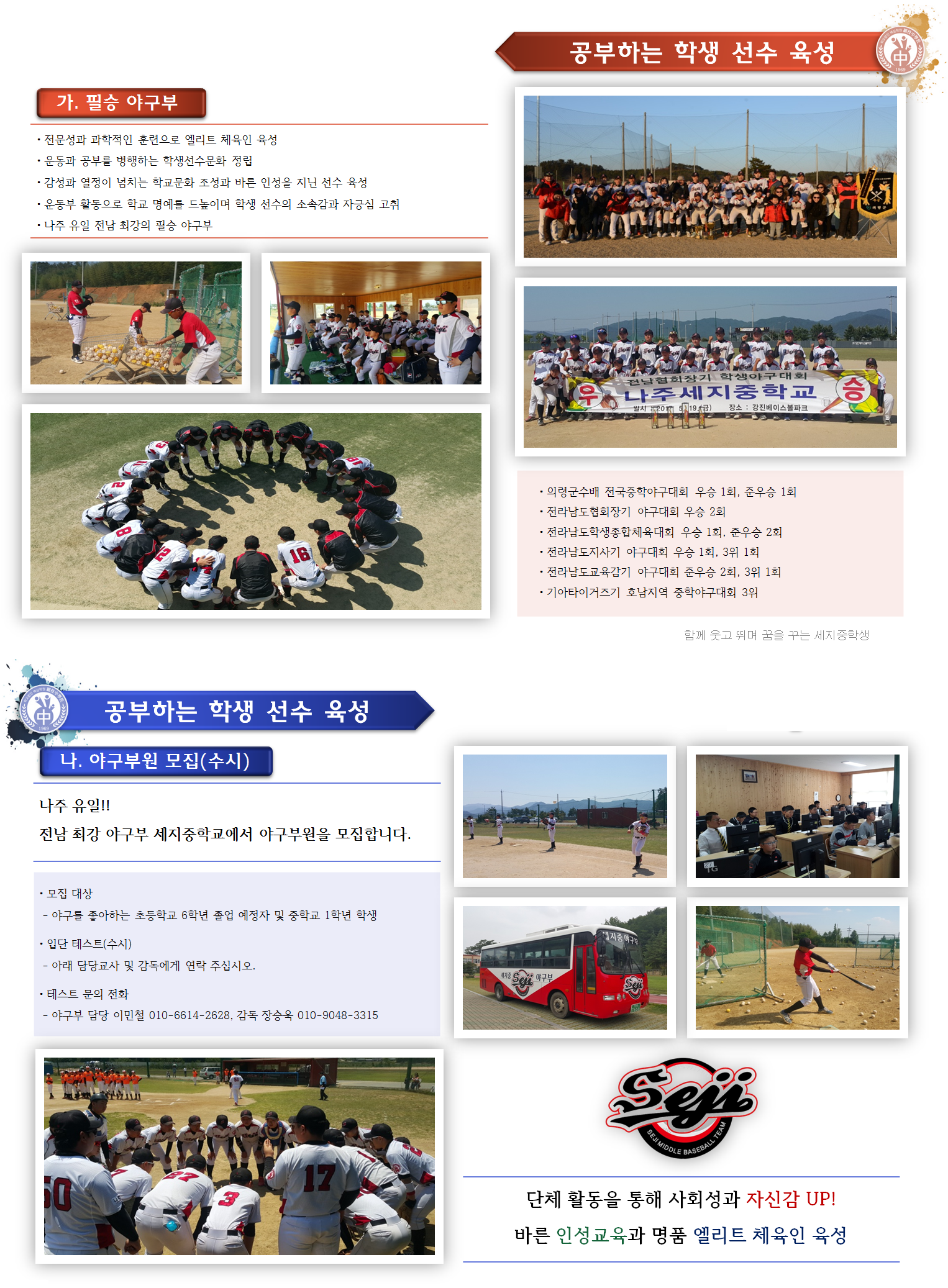 학부모님들의 많은 관심 바랍니다. 세지중학교 야구부 화이팅!!!