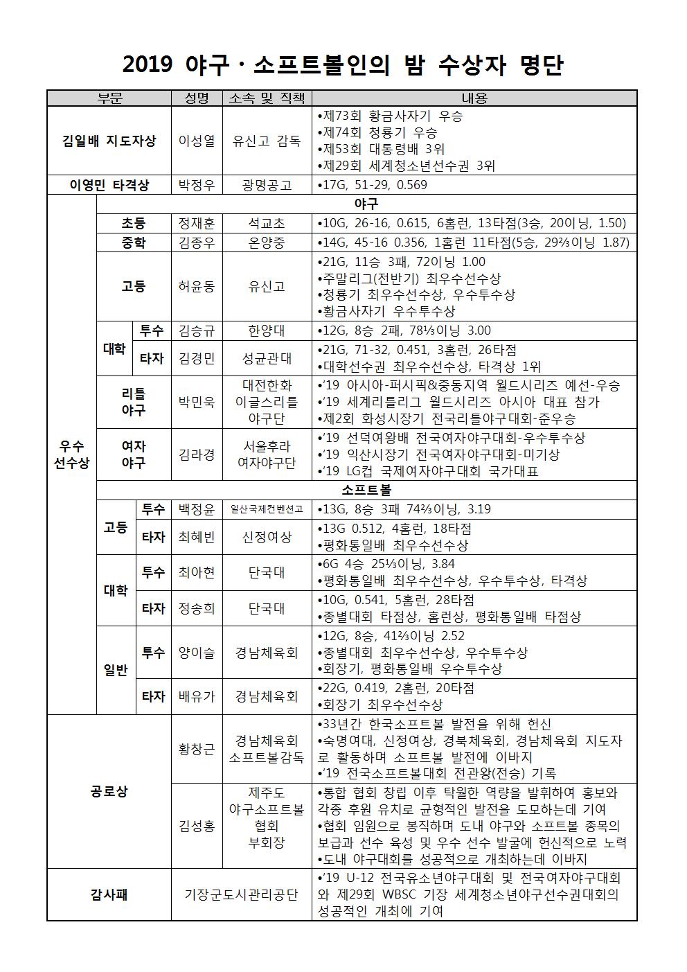 2019 야구소프트볼인의 밤 수상 대상자 명단.jpg
