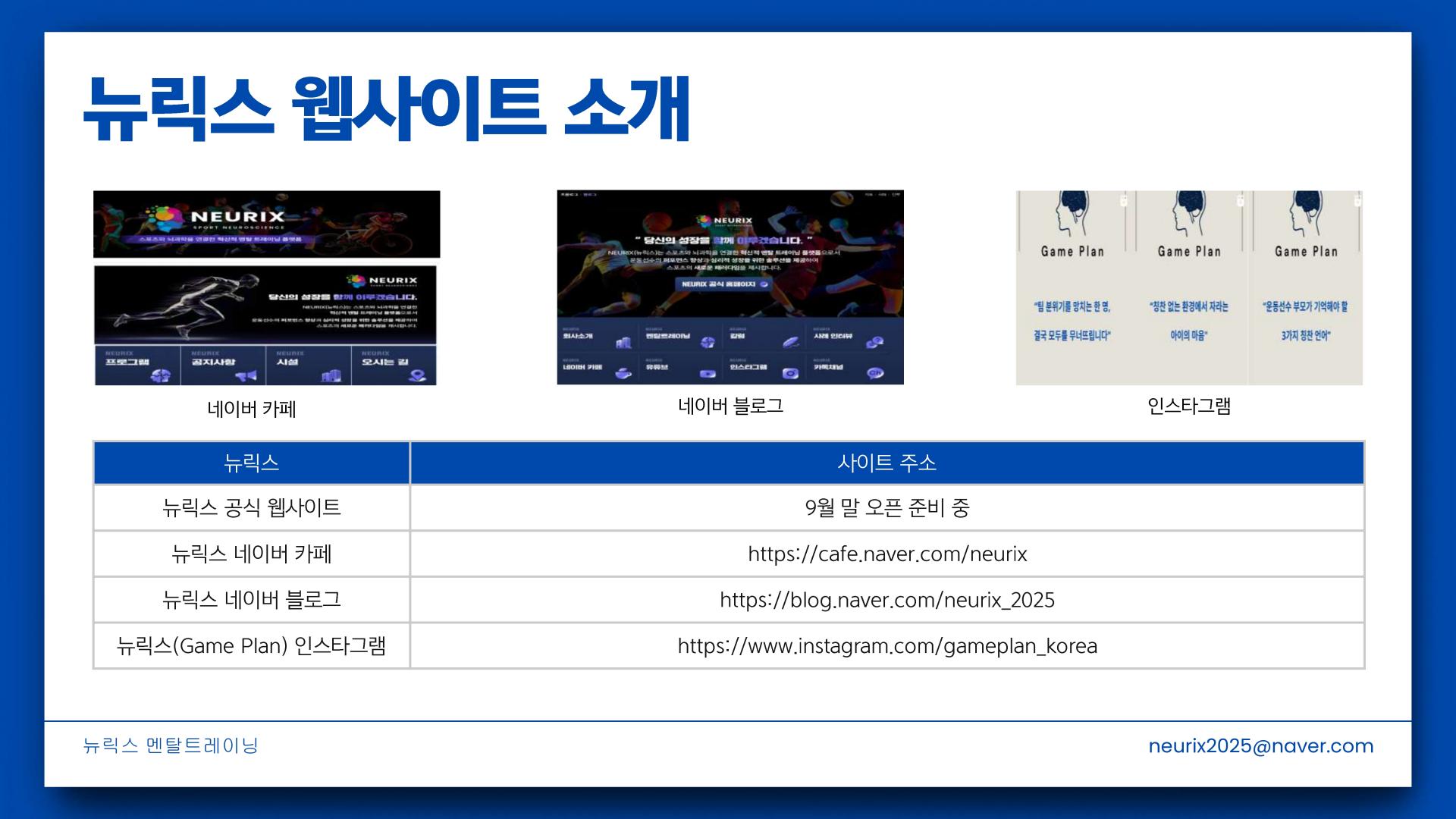 스포츠심리학 & 뇌과학 융합 멘탈 트레이닝 플랫폼 NEURIX 홍보