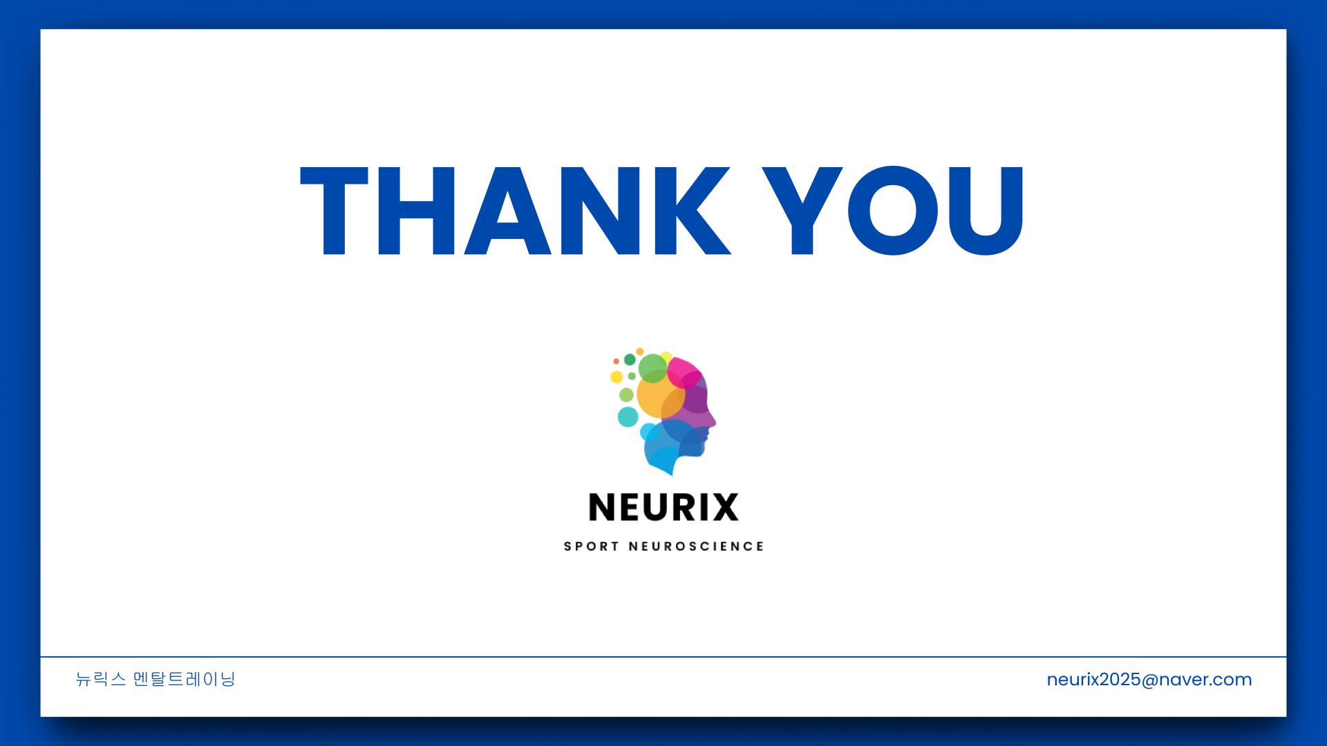 저희 NEURIX(뉴릭스)는 스포츠심리학과 뇌과학을 융합한 멘탈 트레이닝 플랫폼으로서 엘리트 선수, 학생 선수, 지도자, 학부모, 사회 체육인까지 모두를 아우르는 맞춤형 콘텐츠를 제공합니다.