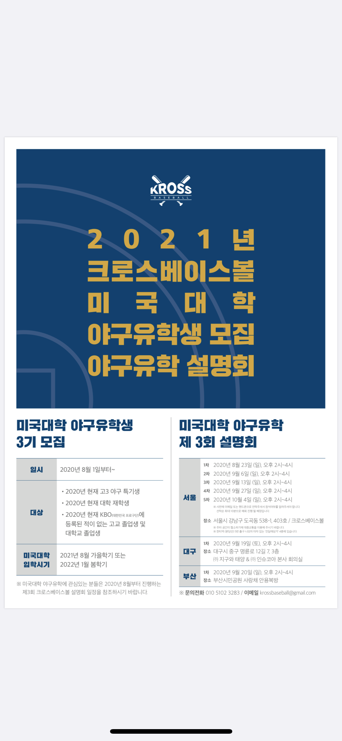 미국대학 야구유학 컨설팅 회사인 크로스베이스볼은