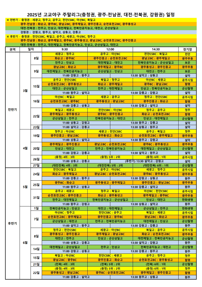 2025 고교야구 주말리그 (대전 전북권) 안내