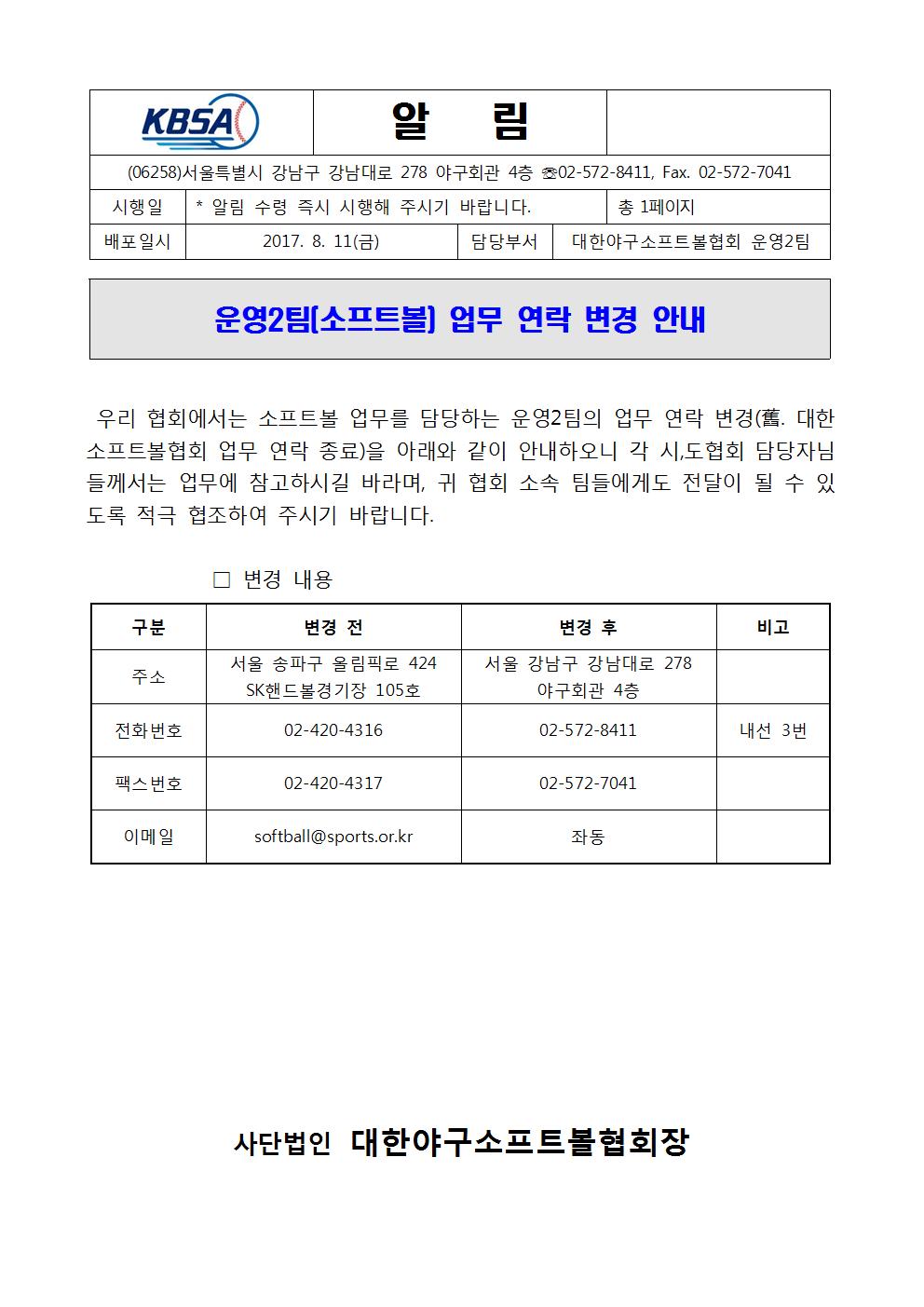 알림(운영2팀(소프트볼) 업무 연락 변경 안내)-2017.8.11.jpg