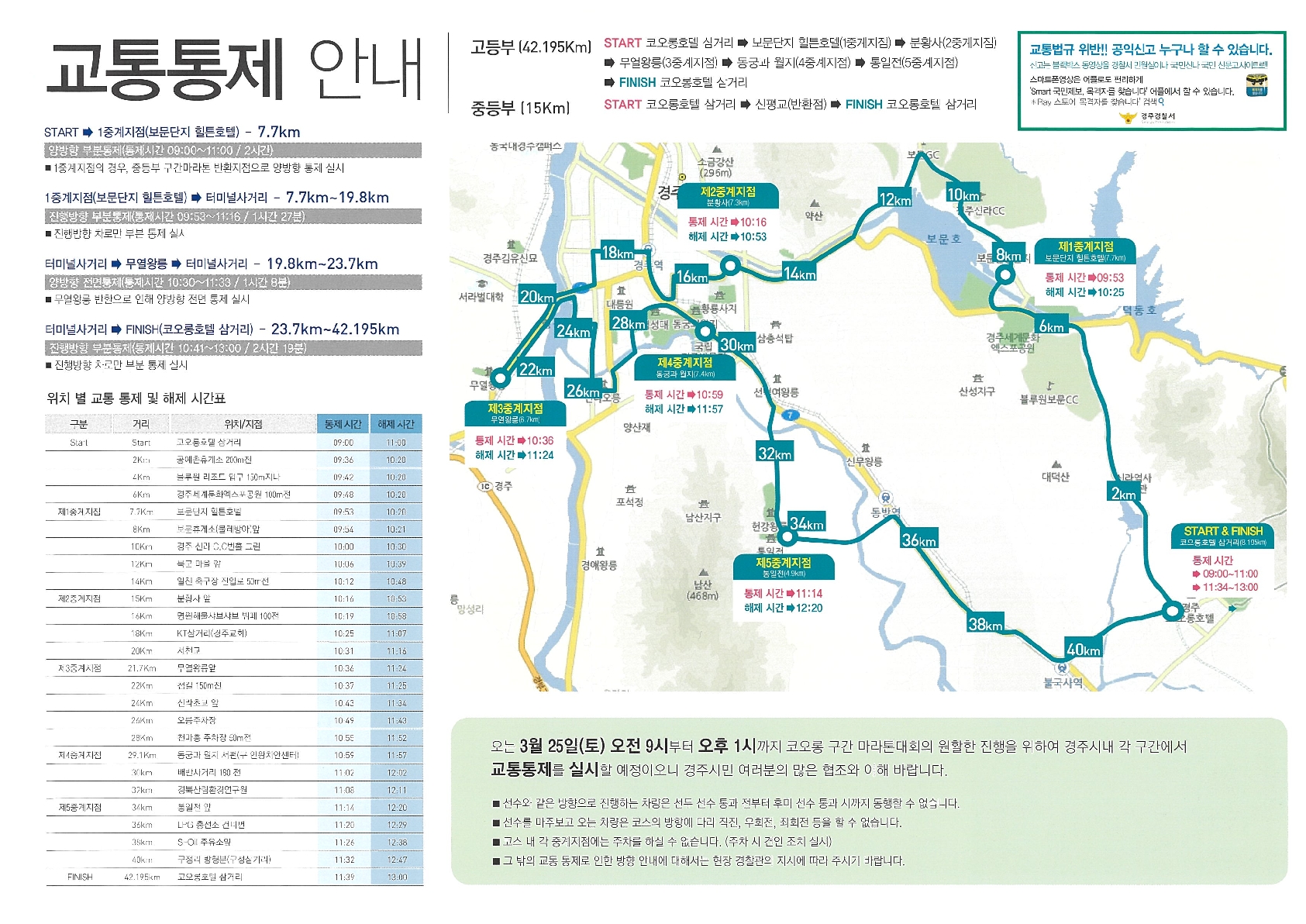 이미지와 같이 교통 통제될 예정이오니 대회 참가 및 관전에 참고하시기 바랍니다
