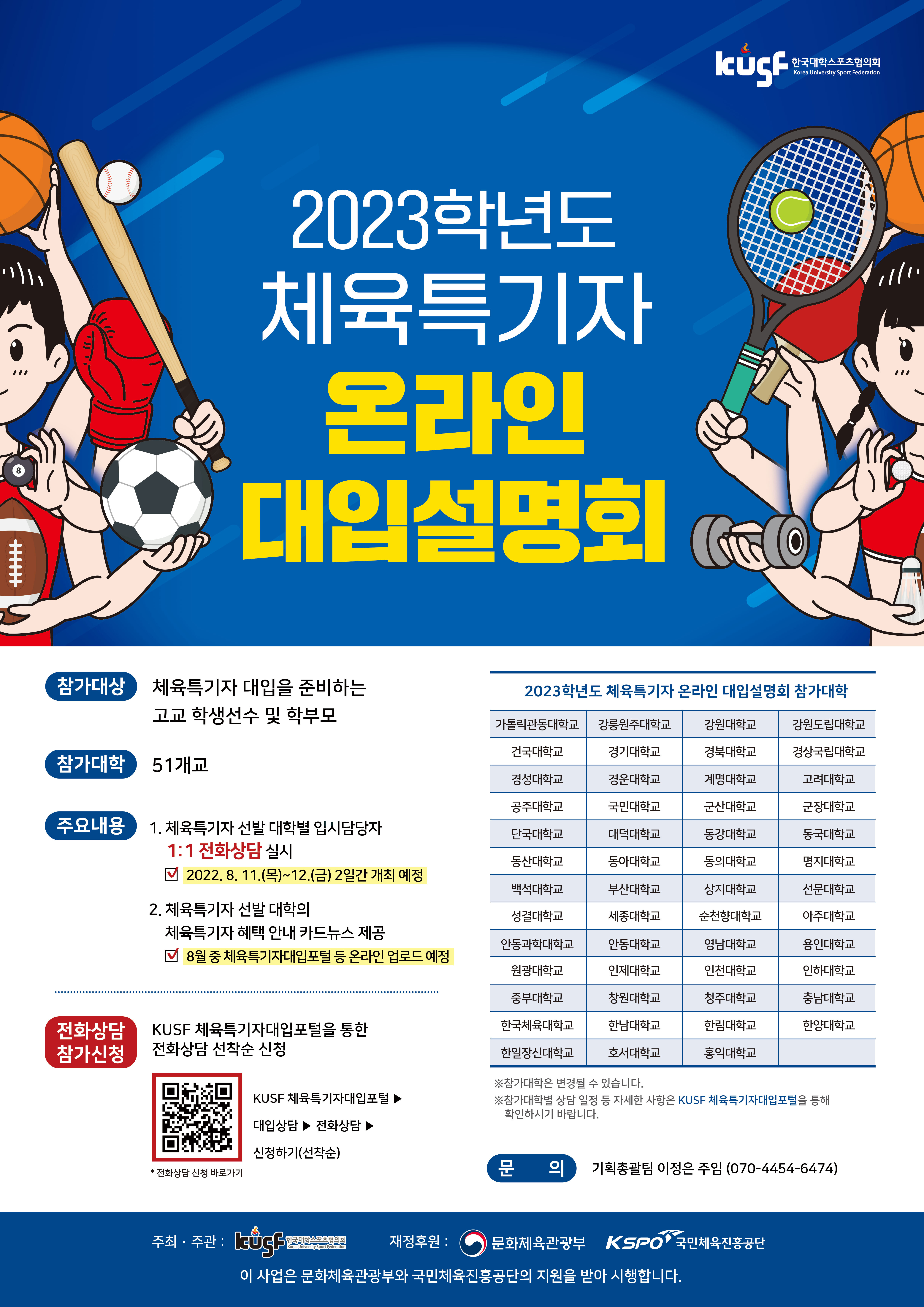 2023학년도 KUSF 체육특기자 대입포털 및 온라인 대입설명회 안내