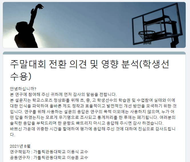 ▶ 지도자 및 학생선수 설문조사 양식