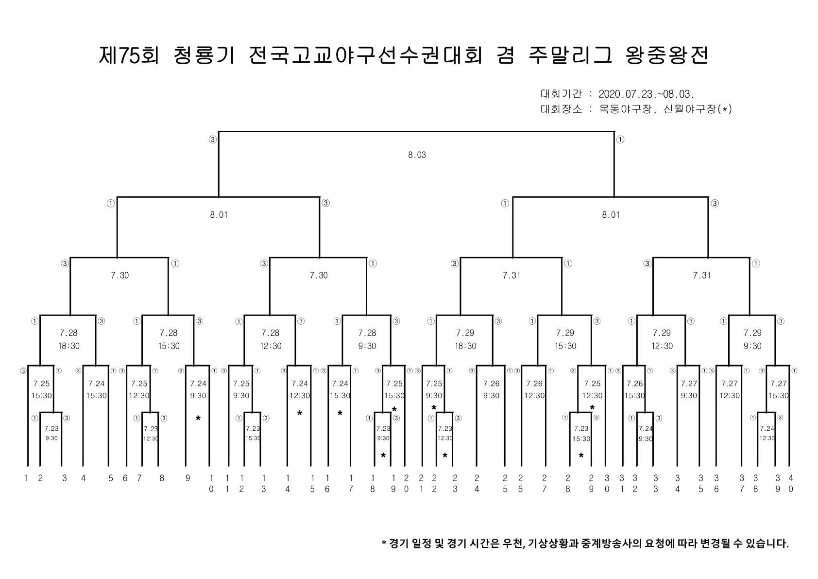 제75회 청룡기 전국고교야구선수권대회 겸 주말리그 왕중왕전 대진표 추첨(안)
