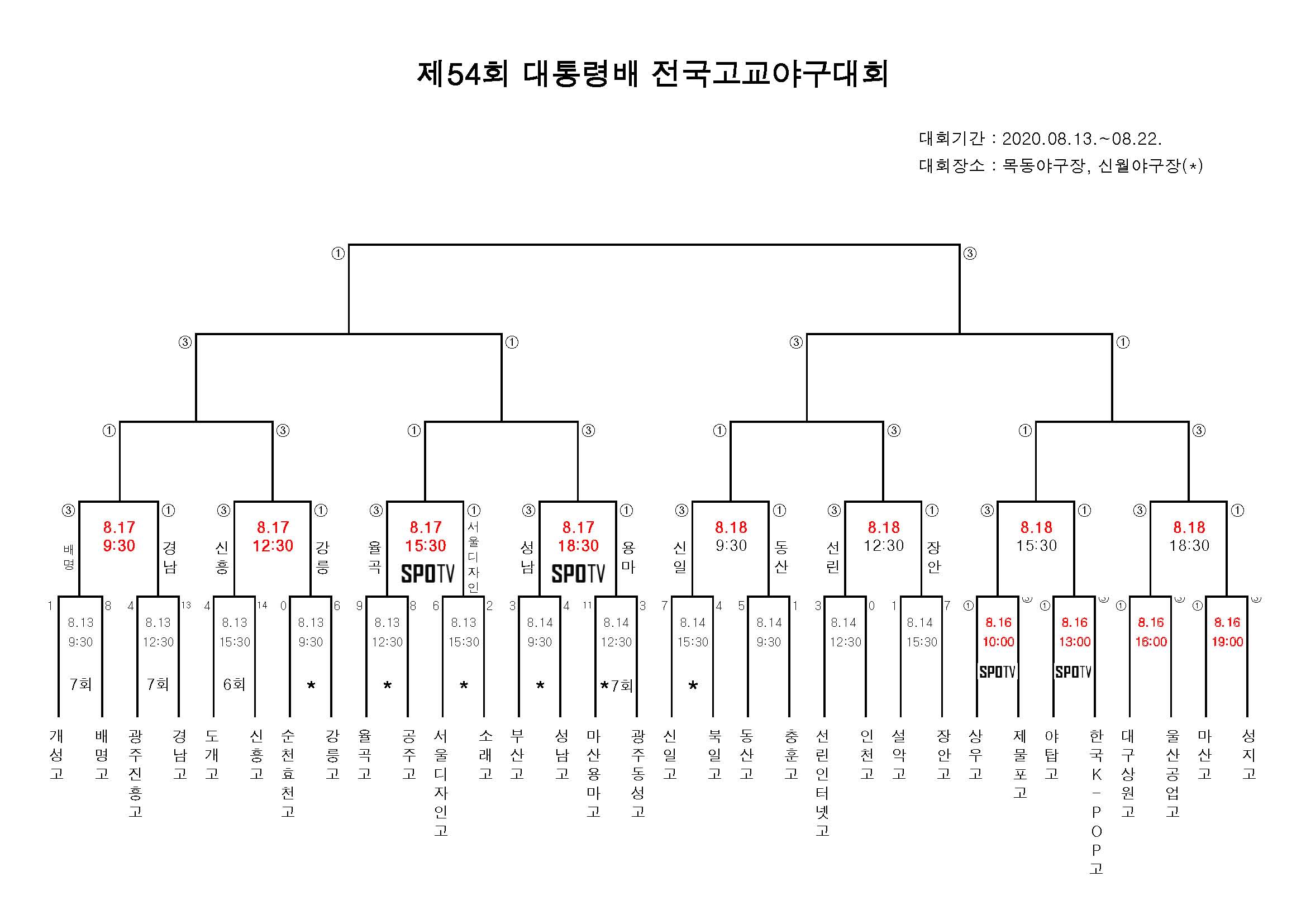 [변경 대진표(8.15)]제54회 대통령배 전국고교야구대회