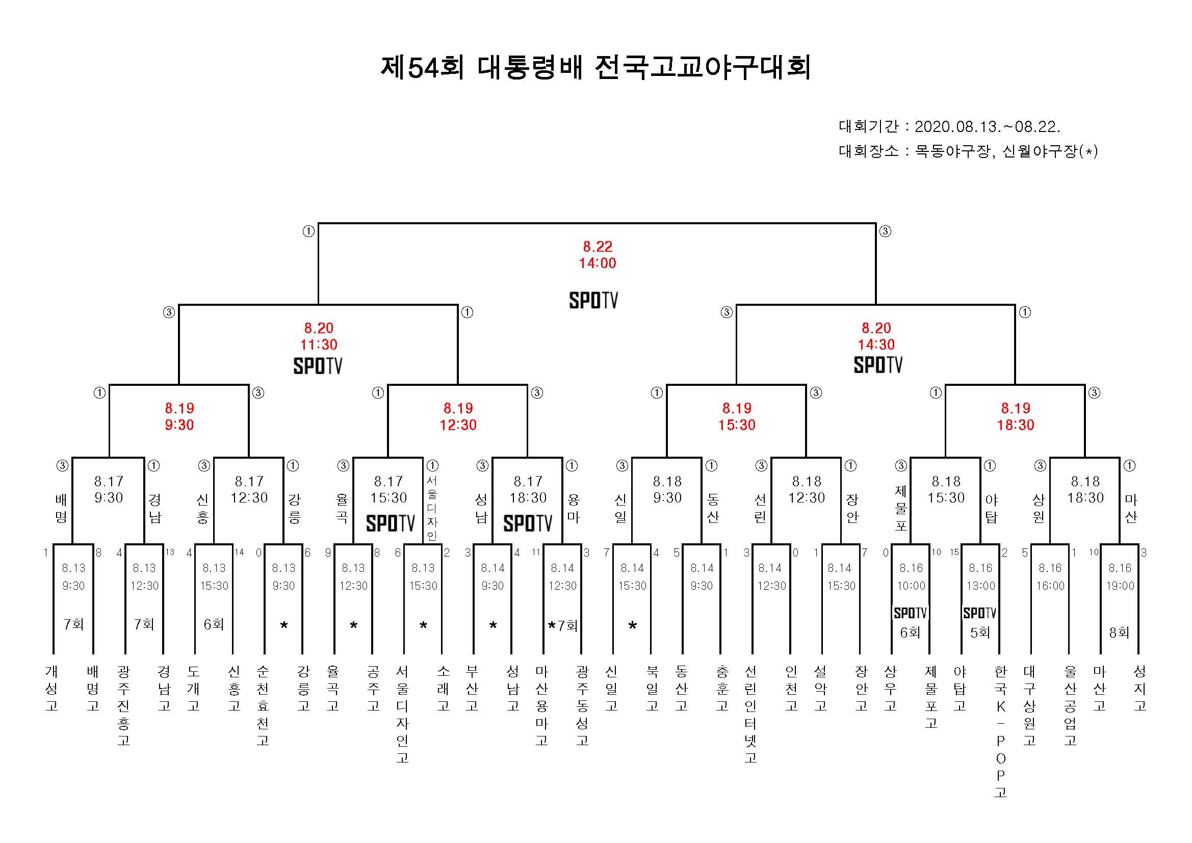 [결승전 포함 일정 확정(8.17)]제54회 대통령배 전국고교야구대회