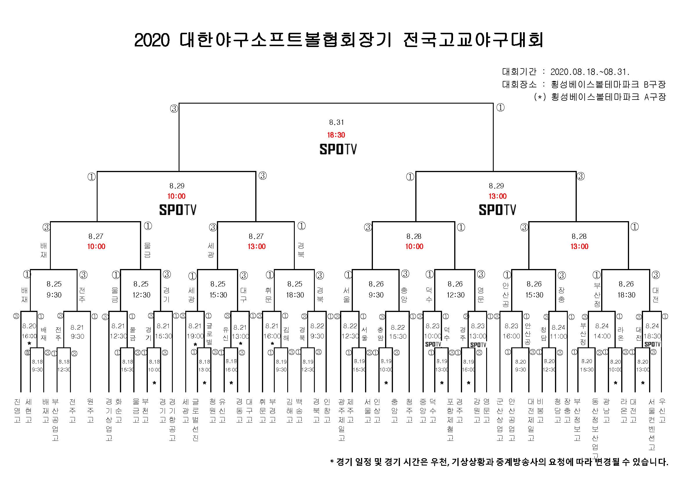 [협회장기-8.24(월) 경기시간 변경]2020 대한야구소프트볼협회장기 전국고교야구대회