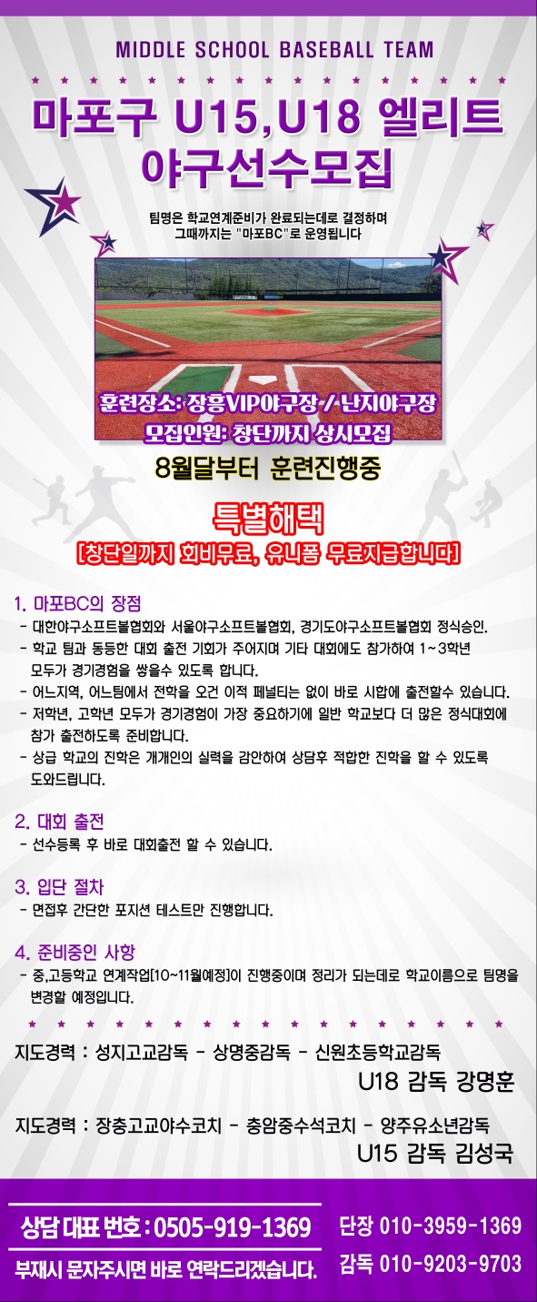 [ 야구선수 모집 ] 마포구 U15, U18 엘리트