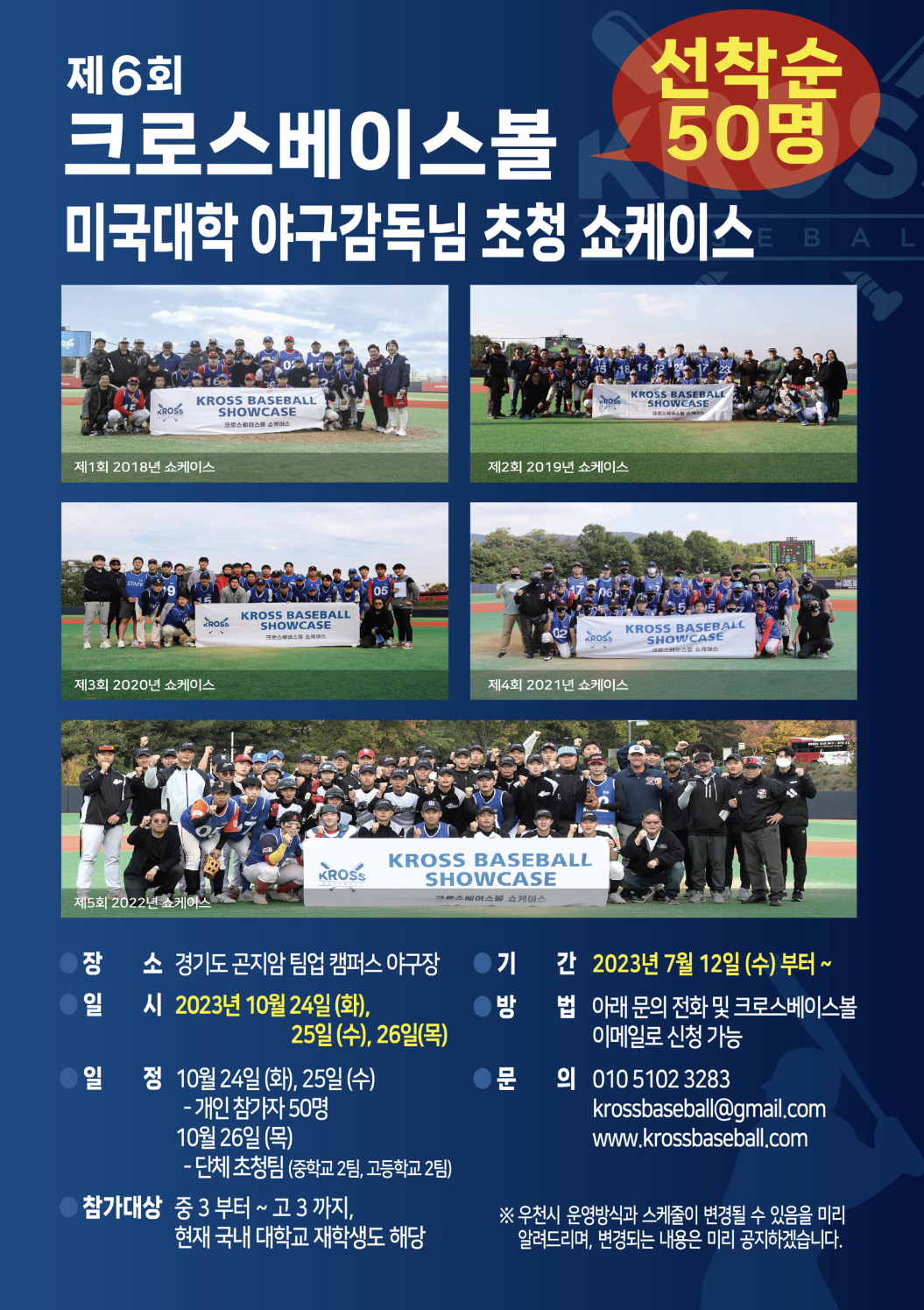 2023년 제6회 크로스베이스볼 미국대학 야구감독님 초청 쇼케이스 안내