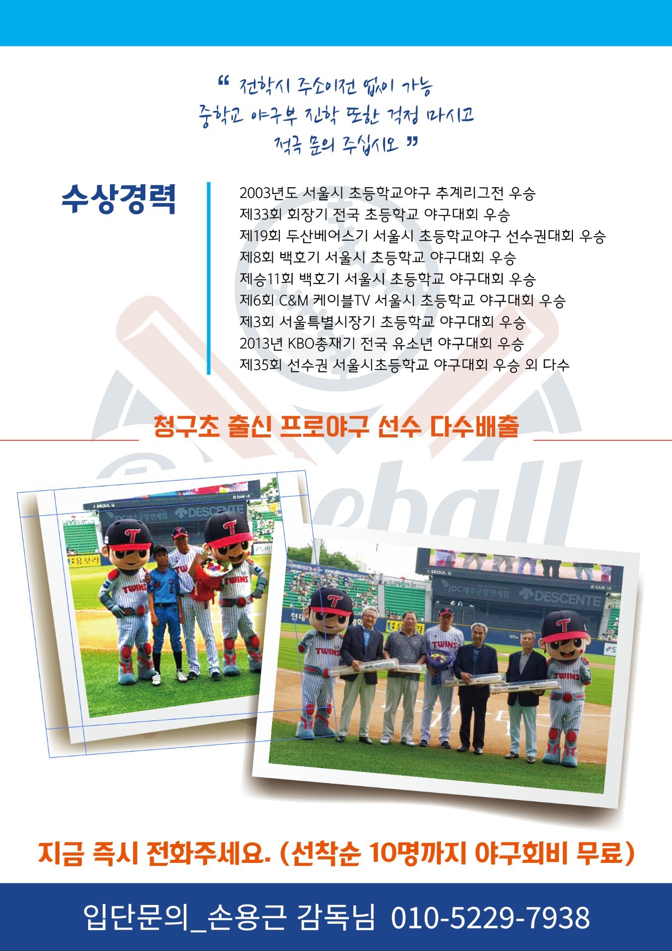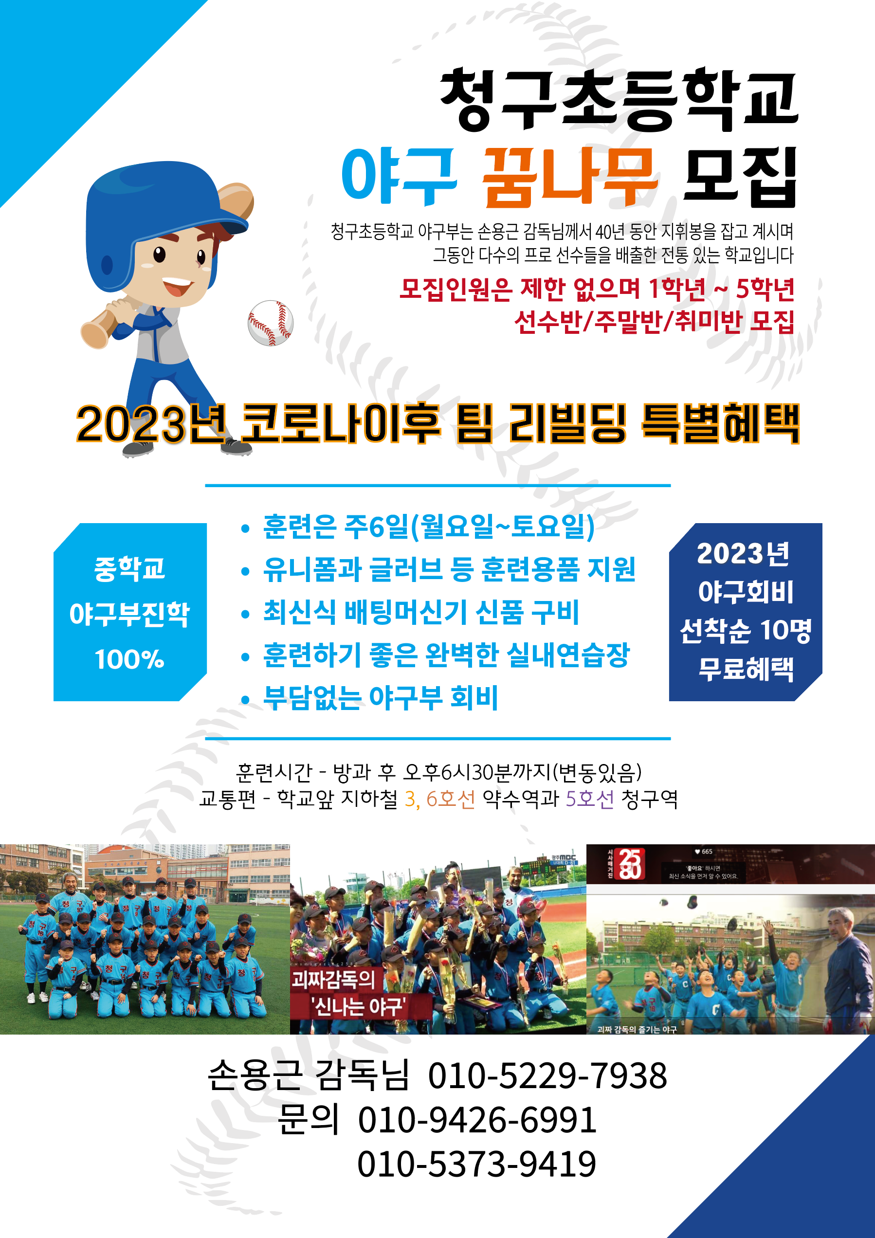 입단문의: 청구초등학교 야구부손용근감독님 010-5229-7938