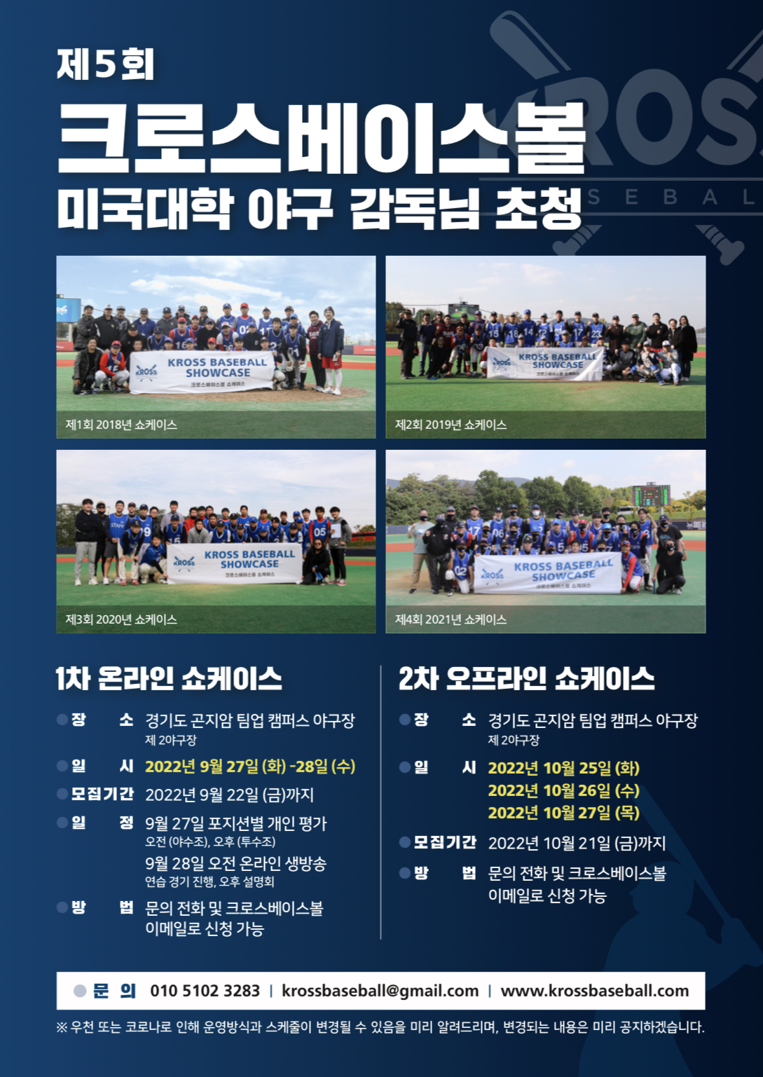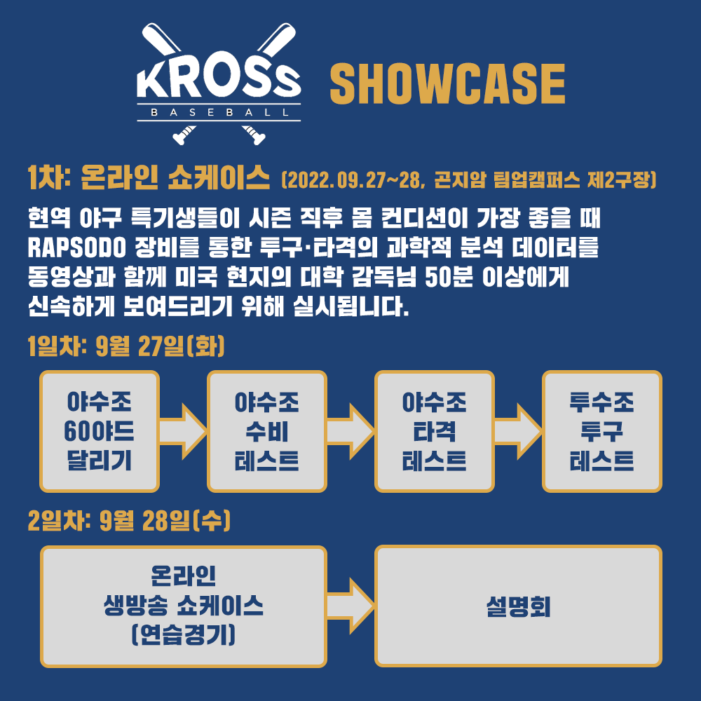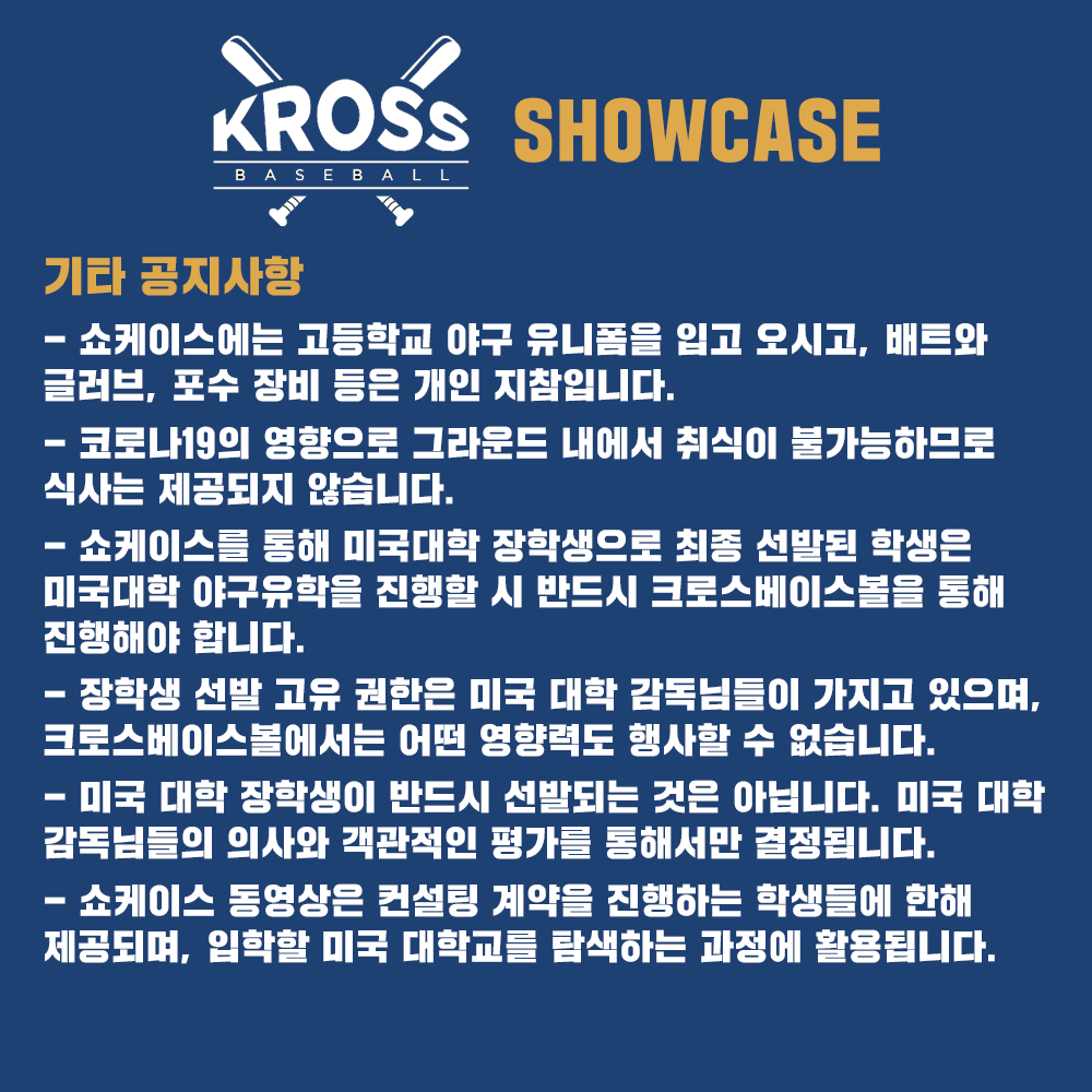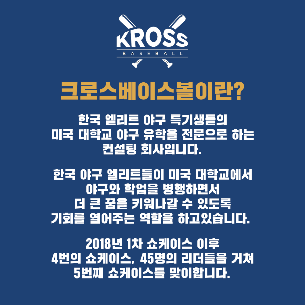 제5회 크로스베이스볼 미국대학 야구감독님 초청 쇼케이스 공식 안내