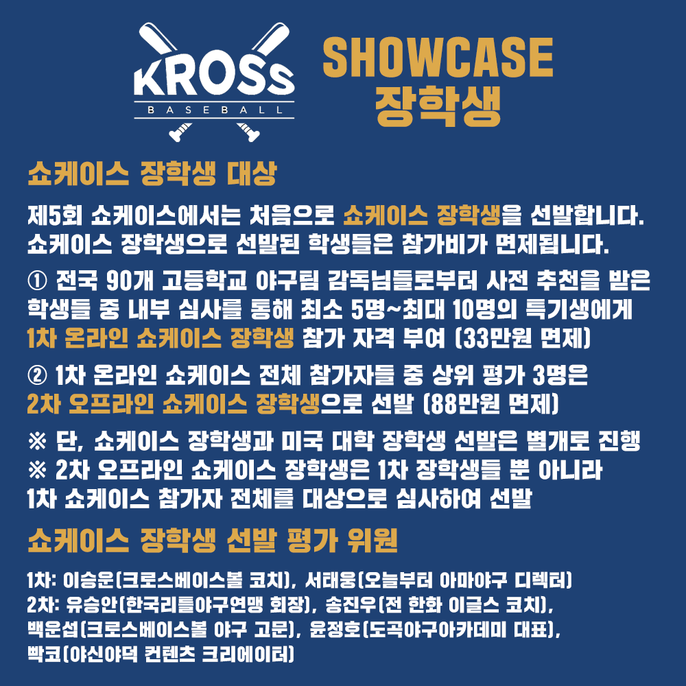 이제 의심이 확신으로, 불안감이 기대감으로 바뀐 크로스베이스볼 쇼케이스에 참여 해 주시기 바랍니다.