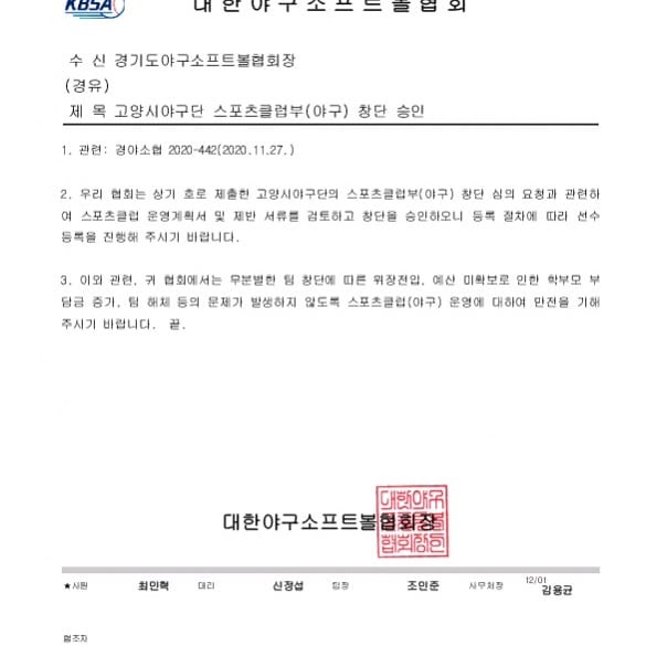 협회 정식등록으로 2021년 3월부터 경기도대회 및 대한야구협회대회 참가를