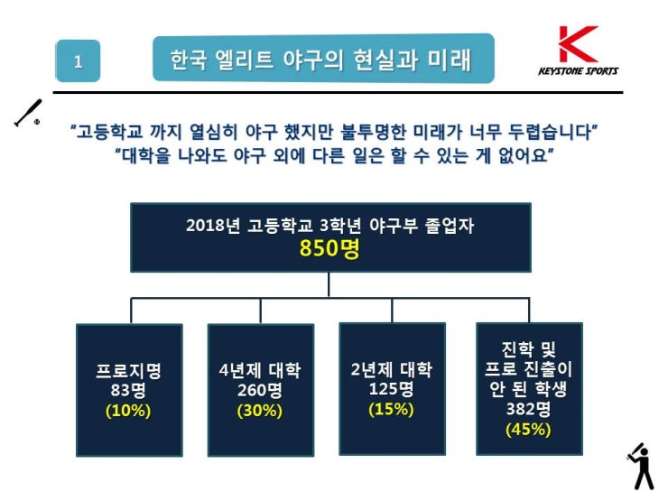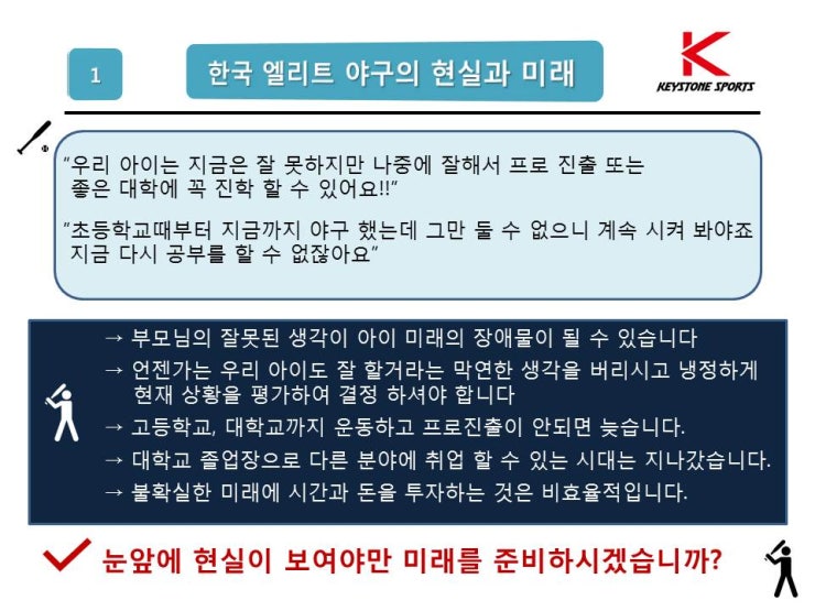 현재 고1,고2 야구부 학생들과 진학을 고민중인 중3 학생들에게 진학에 대한 도피처가 아닌 새로운 넓은길을 열어 주고자 합니다.