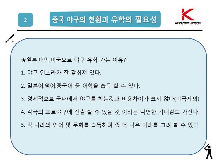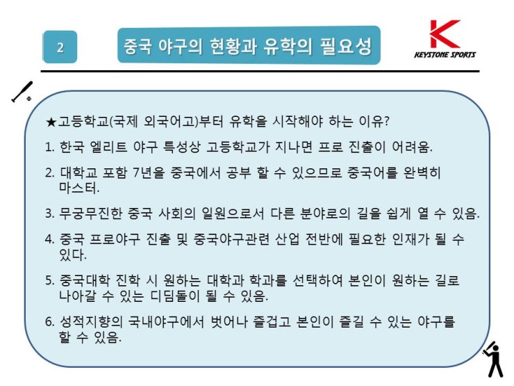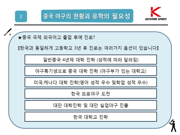 안녕하세요! 중국야구유학 전문 아카데미 키스톤 스포츠입니다.