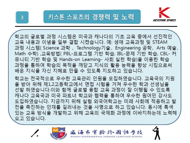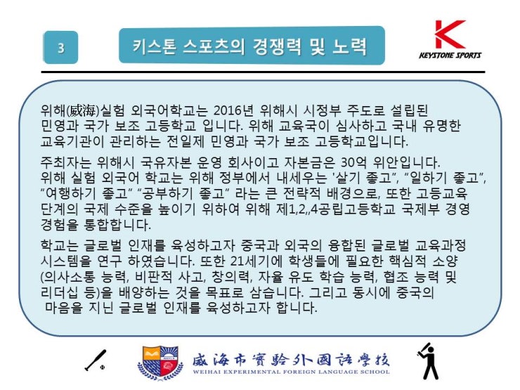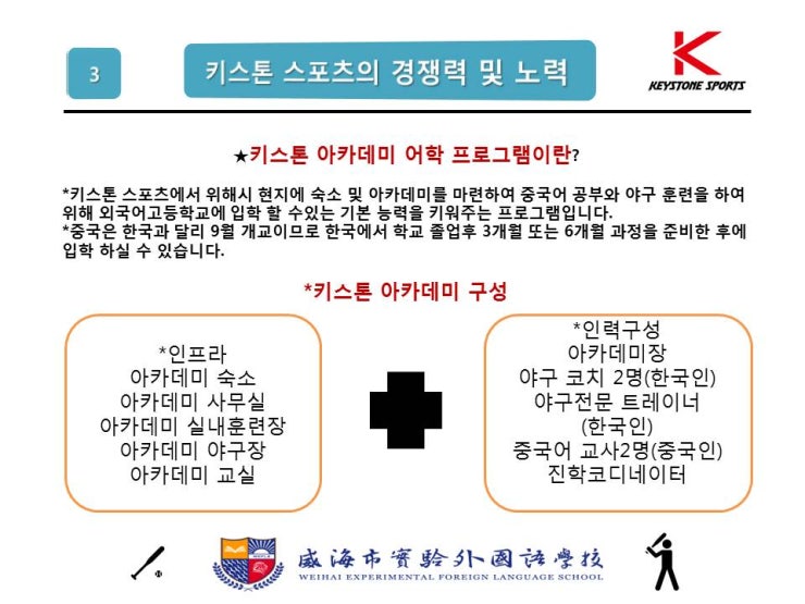 키스톤 스포츠가 중국 위해 국립 실험국제 외국어고와 함께 야구 유학생을 모집합니다,