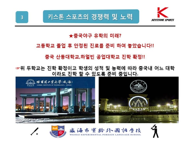 키스톤 스포츠에서 중국 위해국립 국제 외국어고 야구특기자 1기를 모집합니다!
