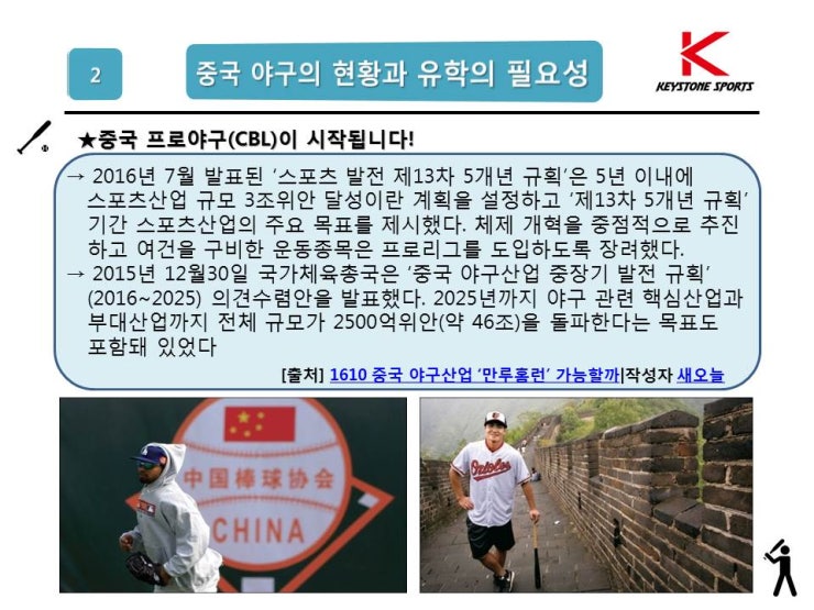 100세 시대에 30대초반에 은퇴를 하여 직장을 구하기 힘든 한국보다 2025년부터 시작되는 중국 프로야구에 선수 및 야구 관련 직종 인원이 너무나도 많이 필요한 상황입니다.