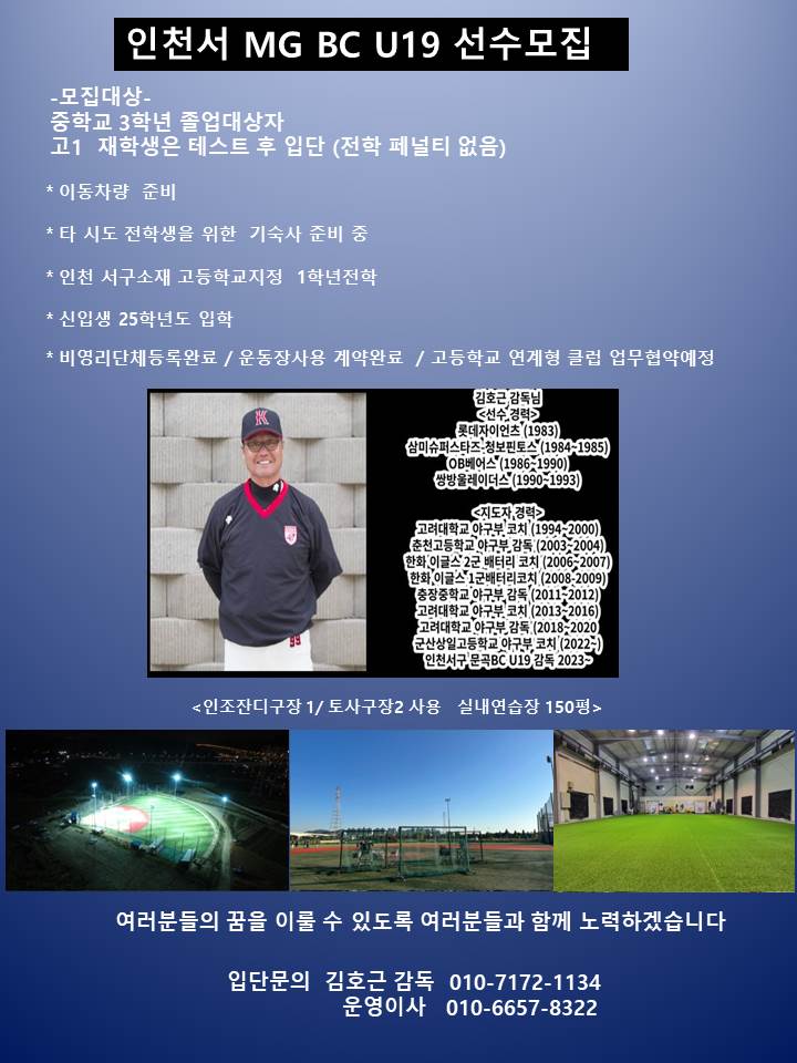 인천에서 최초로 u19 창단합니다 최고시설에서 훈련할수있도록 최선을 다하여 준비하고 있습니다, 파일 확인하시고 연락주시면 친절하게 안내리겠습니다, 문의사항 010 7172 1134 감독 김호근
