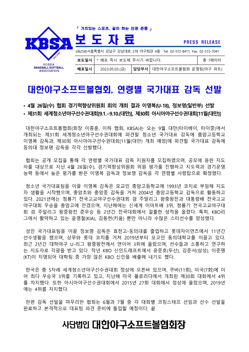 보도자료(대한야구소프트볼협회, 연령별 국가대표 감독 선발)_1.jpg