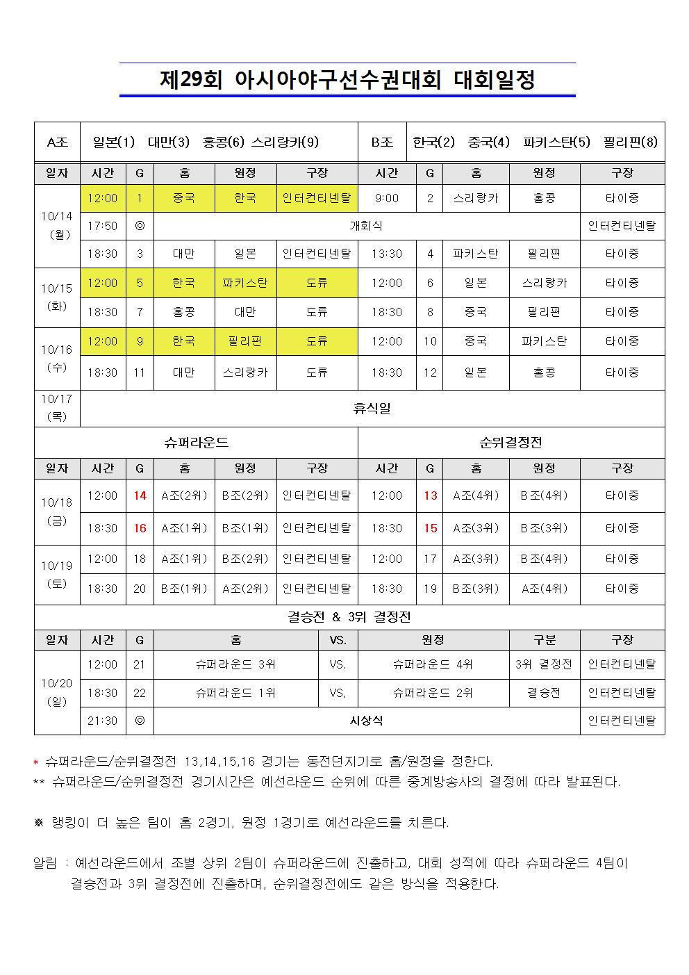 [보도자료] 제29회 아시아야구선수권대회 예선라운드 첫 경기 중국에 3-4패배