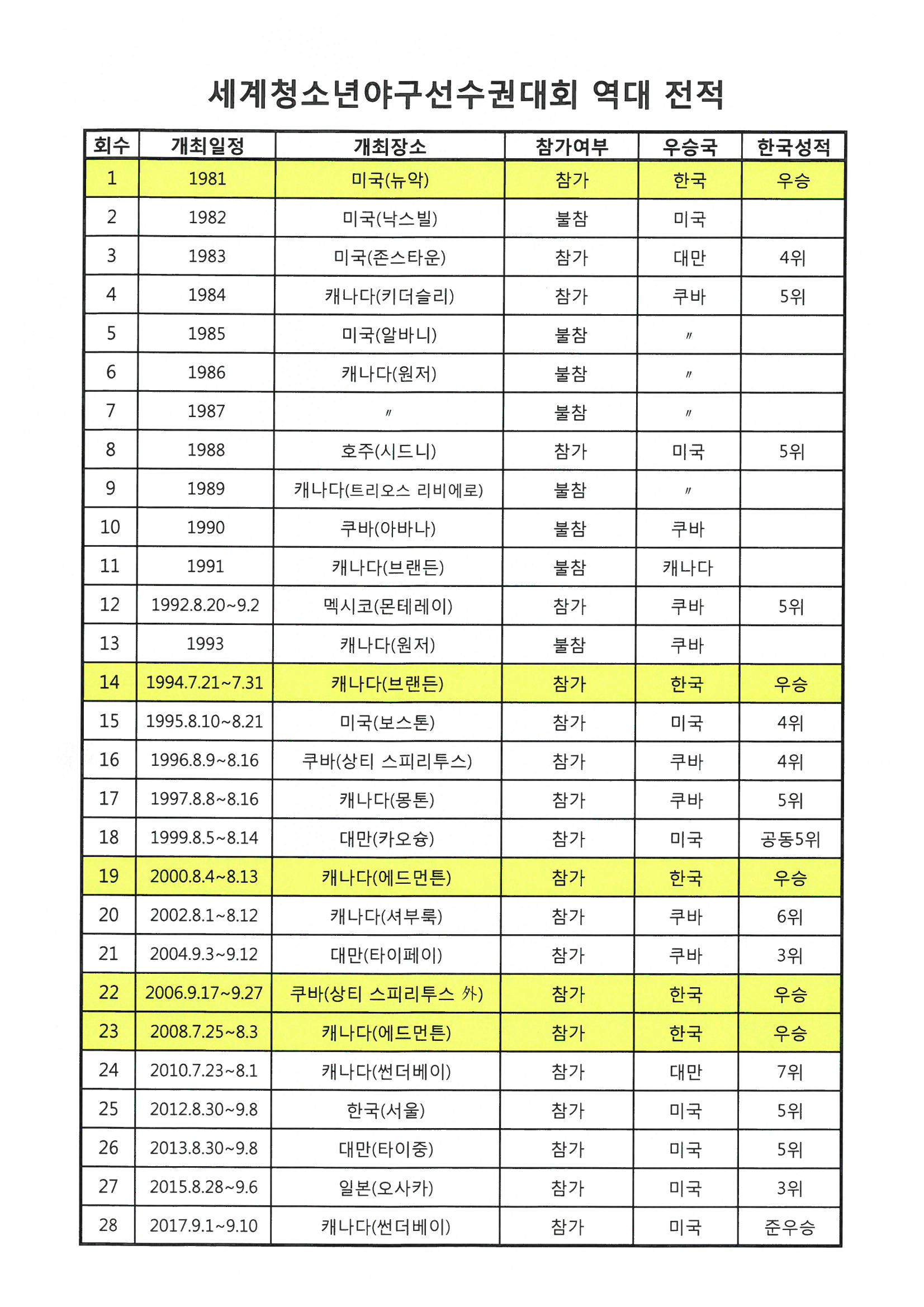 [보도자료]2019년 제29회 세계청소년야구선수권대회 한국(부산 기장군) 개최 확정