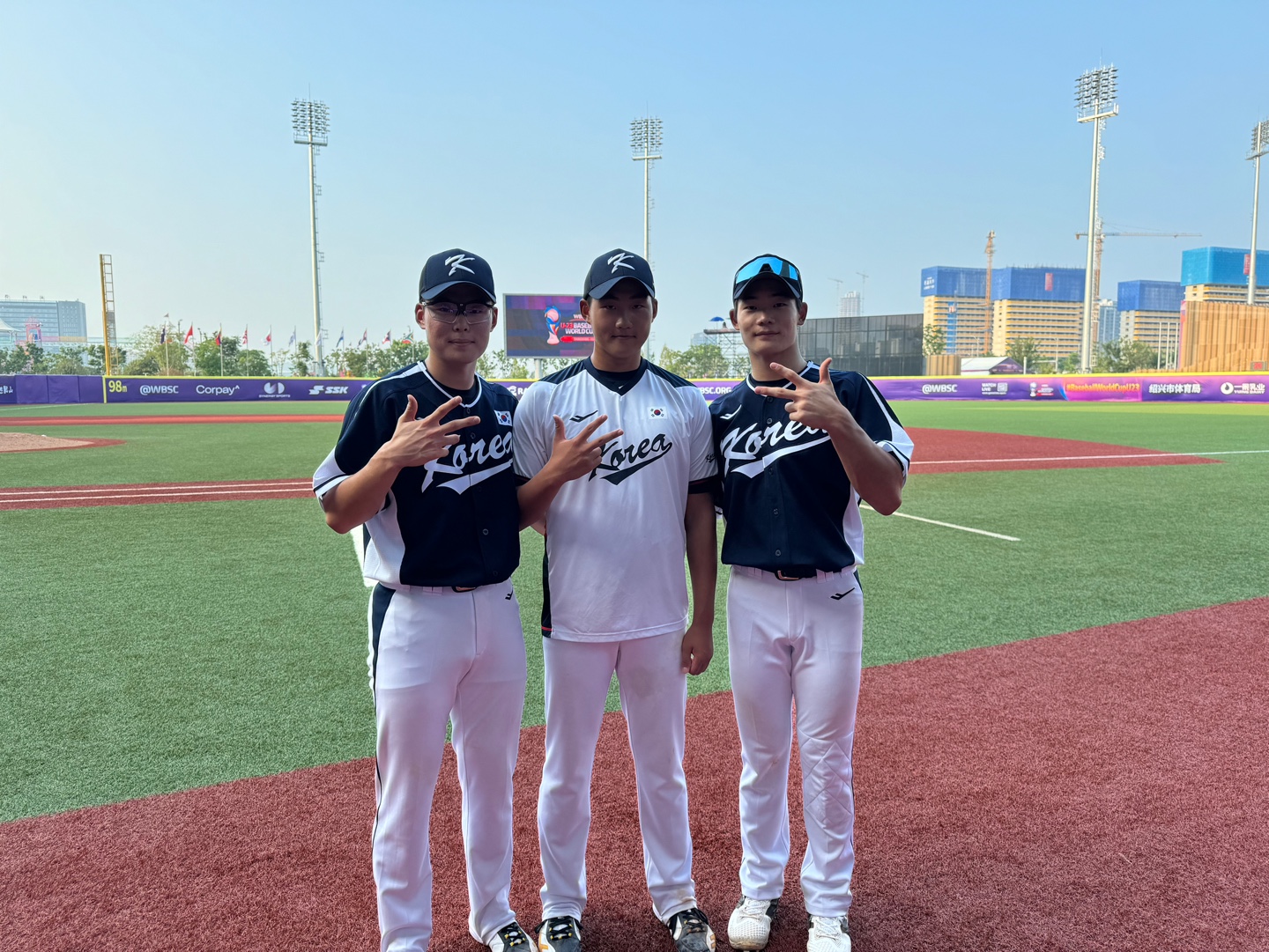 사진설명 대만전을 승리로 이끈 오른쪽부터 송재영(롯데 자이언츠), 김태현(광주제일고 3), 정안석(한화 이글스) 선수의 경기 후 사진_!.jpg