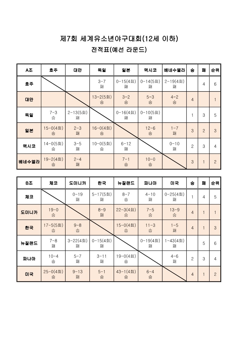 [보도자료] 제7회 세계유소년야구대회 예선라운드 마지막 경기에서 뉴질랜드에 15-0, 4회 콜드게임 승